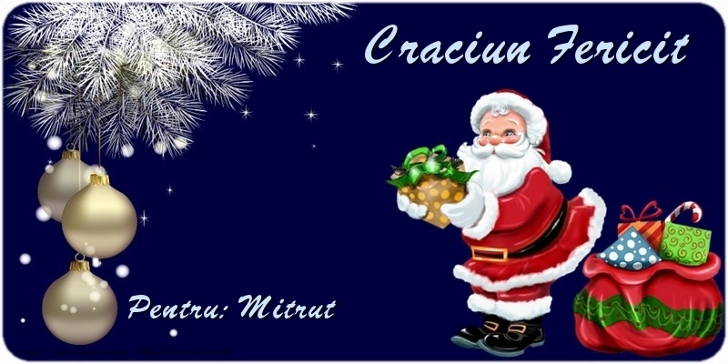 Felicitarea cu Mos Craciun cu sacul de cadouri pe fundal albastru pentru Mitrut spune o poveste de iarnă unică, iar numele Mitrut este eroul principal. Este o călătorie captivantă în lumea minunată a Crăciunului, personalizată pentru a aduce bucurie și emoție.
