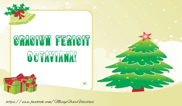 Această felicitare cu desen cu brad și cadouri din colecția noastră de felicitari de Craciun cu numele Octaviana are o notă de originalitate și îți oferă ocazia să faci o persoană să se simtă specială datorită faptului că acolo este numele ei. Felicitarea se poate descărca gratuit sau se poate trimite prin Whatsapp, Facebook, Twitter, Pinterest. Imagine de Sărbătoarea Crăciunului cu desen cu brad și cadouri cu dimensiunile 600px x 350px și cu textul Craciun Fericit Octaviana!.