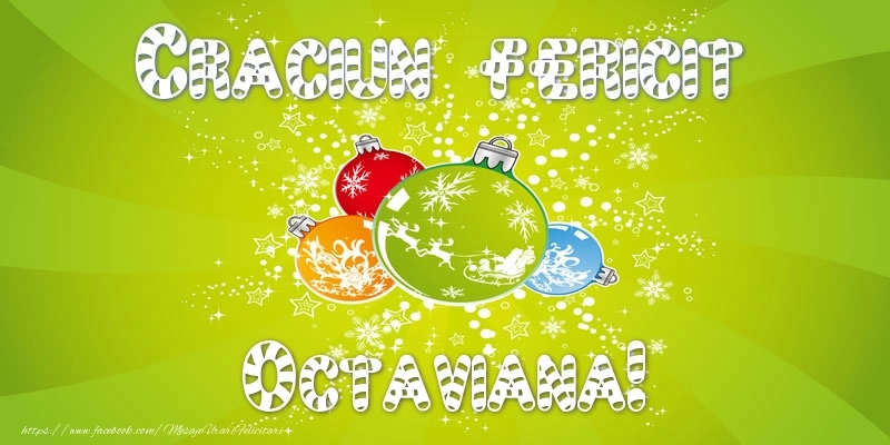 Această felicitare cu globuri colorate din colecția noastră de felicitari de Craciun cu numele Octaviana are o notă de originalitate și îți oferă ocazia să faci o persoană să se simtă specială datorită faptului că acolo este numele ei. Felicitarea se poate descărca gratuit sau se poate trimite prin Whatsapp, Facebook, Twitter, Pinterest. Imagine de Sărbătoarea Crăciunului cu globuri colorate cu dimensiunile 800px x 400px și cu textul Craciun Fericit Octaviana!.