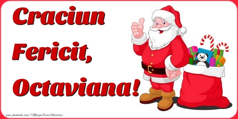 Felicitarea cu fundal cu moș crăciun și sacul de cadouri pentru Octaviana spune o poveste de iarnă unică, iar numele Octaviana este eroul principal. Este o călătorie captivantă în lumea minunată a Crăciunului, personalizată pentru a aduce bucurie și emoție.