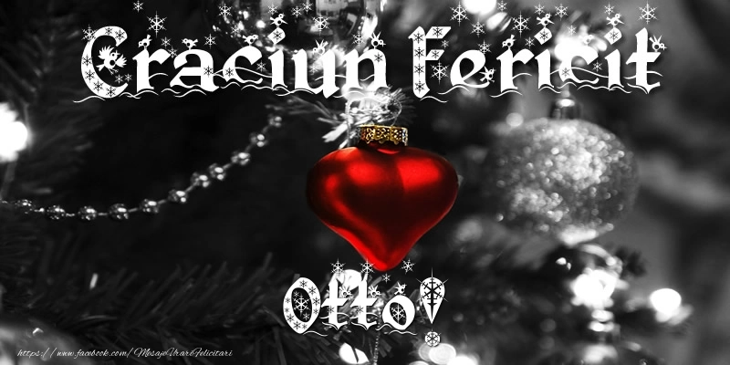 Această felicitare cu glob roșu în formă de inimioară pe brad din colecția noastră de felicitari de Craciun cu numele Otto are o notă de originalitate și îți oferă ocazia să faci o persoană să se simtă specială datorită faptului că acolo este numele ei. Felicitarea se poate descărca gratuit sau se poate trimite prin Whatsapp, Facebook, Twitter, Pinterest. Imagine de Sărbătoarea Crăciunului cu glob roșu în formă de inimioară pe brad cu dimensiunile 800px x 400px și cu textul Craciun Fericit Otto!.