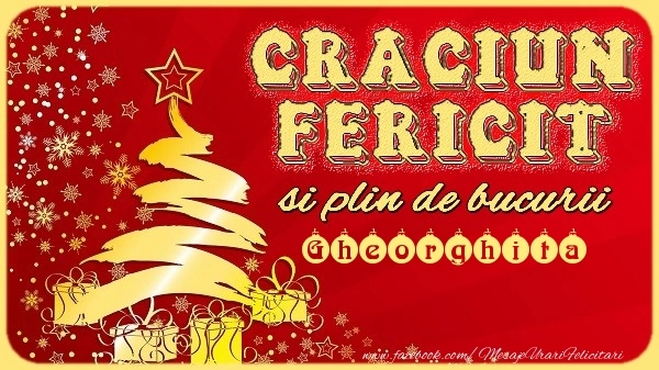 Această felicitare cu brad, steluțe și cadouri din colecția noastră de felicitari de Craciun cu numele Gheorghita are o notă de originalitate și îți oferă ocazia să faci o persoană să se simtă specială datorită faptului că acolo este numele ei. Felicitarea se poate descărca gratuit sau se poate trimite prin Whatsapp, Facebook, Twitter, Pinterest. Imagine de Sărbătoarea Crăciunului cu brad, steluțe și cadouri cu dimensiunile 600px x 337px și cu textul Craciun Fericit si plin de bucurii Gheorghita.