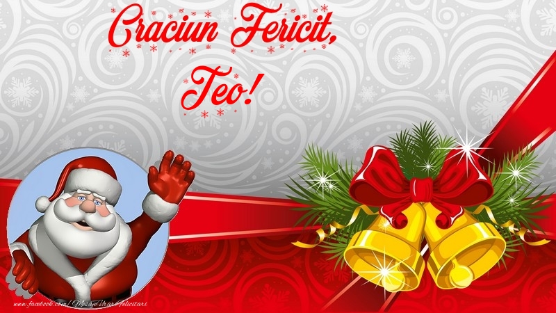 Craciun Fericit, Teo | Felicitare cu Mos Craciun și clopotei | Felicitari de Craciun