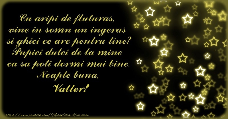Noapte buna, Valter. Iti doresc un somn usor, si o noapte ca-n povesti, sa visezi tot ce-ti doresti.
