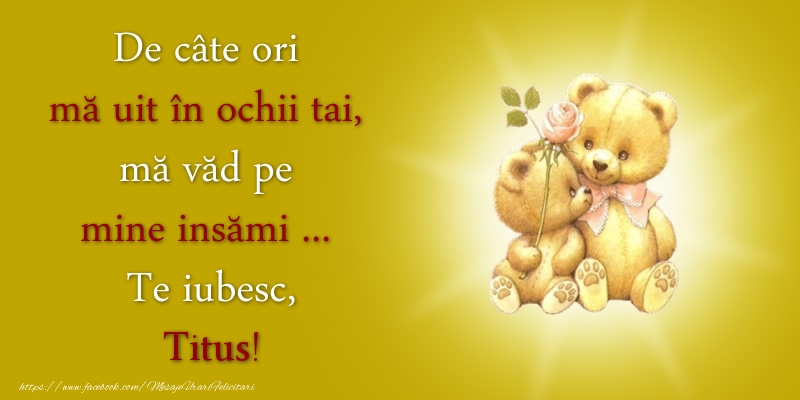 De câte ori  mă uit în ochii tai, mă văd pe mine insămi ...  Te iubesc, Titus! | Felicitare cu ursuleți îndrăgostiți | Felicitari de dragoste