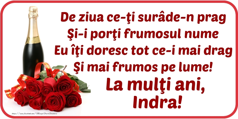 La Mulți Ani Indra, de ziua numelui tău iți doresc multă sănătate, bucurii și realizarea tuturor dorințelor.