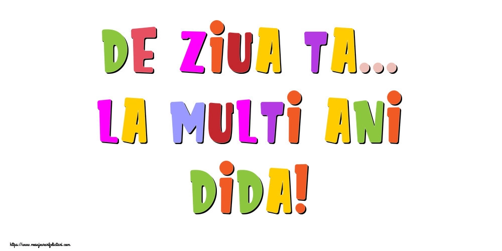 Felicitarea cu litere colorate este ca o explozie de bucurie și culoare, iar numele Dida este adăugat cu gingășie pentru a personaliza această experiență de sărbătoare. Este modul tău de a spune la mulți ani într-un mod unic și special!