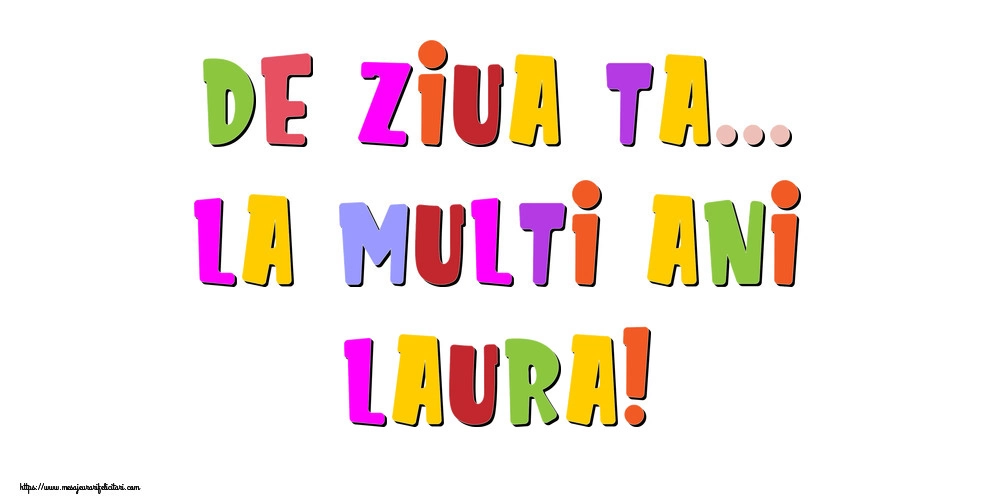 De ziua ta... La multi ani, Laura! | Felicitare cu litere colorate | Felicitari de la multi ani
