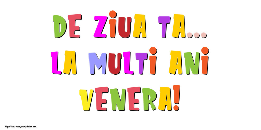 De ziua ta... La multi ani, Venera! | Felicitare cu litere colorate | Felicitari de la multi ani