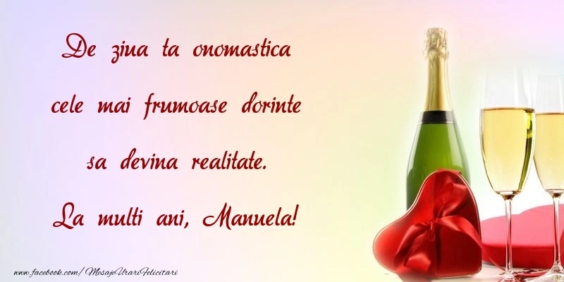 De ziua ta onomastica cele mai frumoase dorinte sa devina realitate. Manuela