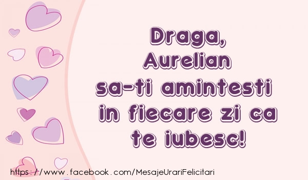 Draga, Aurelian sa-ti amintesti in fiecare zi ca te iubesc! | Felicitare cu inimioare roz si mov | Felicitari de dragoste