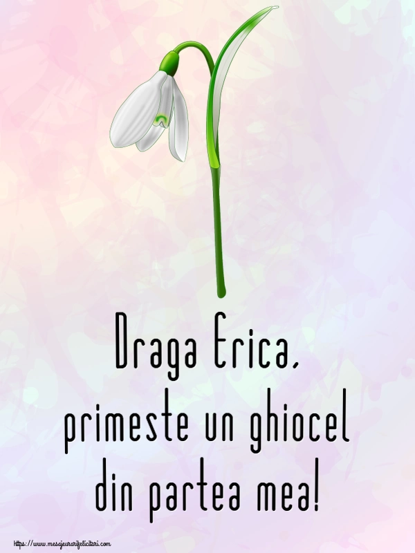 Draga Erica, primeste un ghiocel din partea mea! | Felicitare cu un ghiocel frumos | Felicitari de Martisor