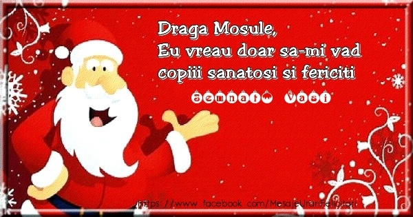 Draga Mosule, eu vreau doar sa-i vad copii sanatosi si fericiti  Semnat: Vasi | Felicitare cu scrisoare pentru Mos Craciun de la parinti | Felicitari de Craciun