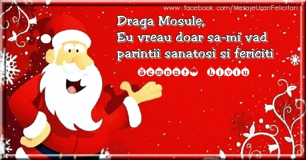 Draga Mosule, eu vreau doar sa-i vad parintii sanatosi si fericiti  Semnat: Liviu | Felicitare cu scrisoare pentru Mos Craciun de la copii | Felicitari de Craciun
