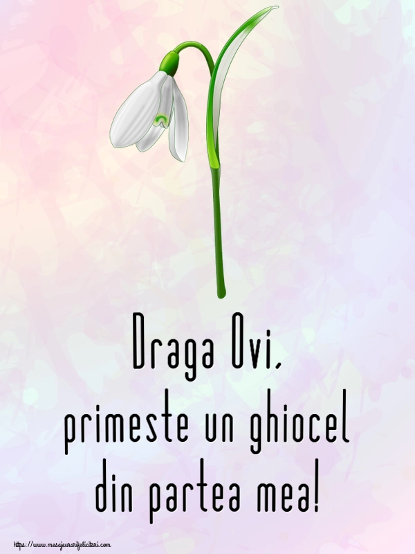 Draga Ovi, primeste un ghiocel din partea mea! | Felicitare cu un ghiocel frumos | Felicitari de Martisor