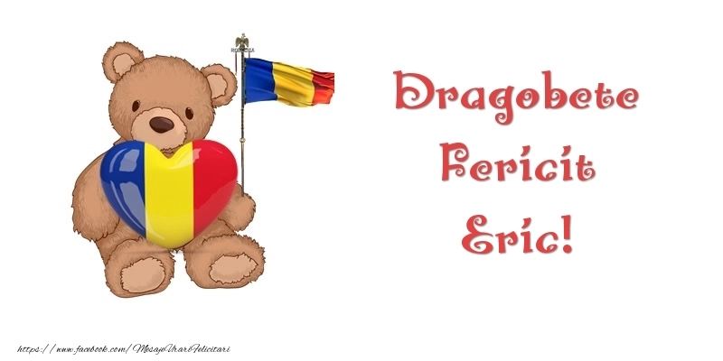 Această felicitare cu ursuleț cu steagul României care sărbătorește Dragobetele din colecția noastră de felicitari de Dragobete cu numele Eric are o notă de originalitate și îți oferă ocazia să faci o persoană să se simtă specială datorită faptului că acolo este numele ei. Felicitarea se poate descărca gratuit sau se poate trimite prin Whatsapp, Facebook, Twitter, Pinterest. Imagine de dragobete cu ursuleț cu steagul României care sărbătorește Dragobetele cu dimensiunile 800px x 400px și cu textul Dragobete Fericit Eric!.