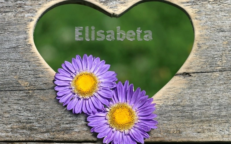Elisabeta | Felicitare cu 2 flori și inimioară pe fundal de lemn vintage | Felicitari de dragoste