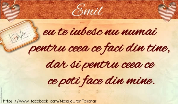 Te iubesc, Emil. Tu esti raza de soare ce-mi incalzeste diminetile si steaua ce-mi vegheaza noptile de-a pururi.