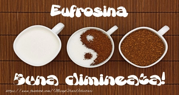 Felicitarea de buna dimineata cu 3 căni de cafea yin si yang pentru Eufrosina aduce cu sine raze luminoase și culori calde, ca o invitație la un nou început plin de bucurie. În această dimineață, aroma cafelei se amestecă cu numele Eufrosina pentru a crea un amestec unic de energie și confort.