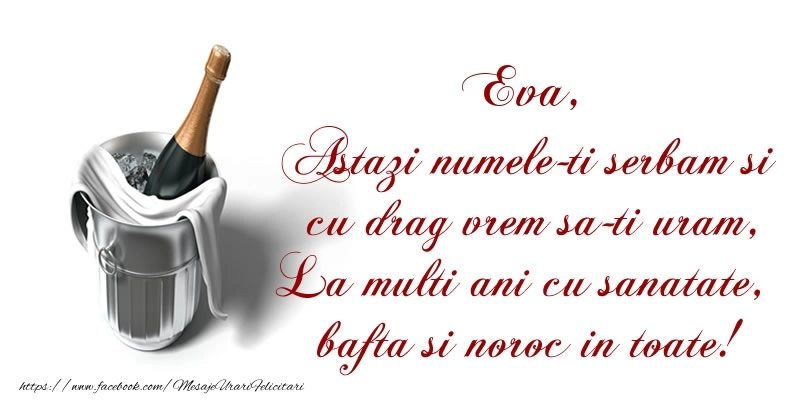 Eva Astazi numele-ti serbam si cu drag vrem sa-ti uram, La multi ani cu sanatate, bafta si noroc in toate.