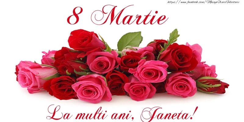 Felicitare cu trandafiri de 8 Martie La multi ani, Janeta!