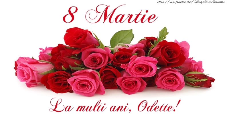 Felicitare cu trandafiri de 8 Martie La multi ani, Odette!