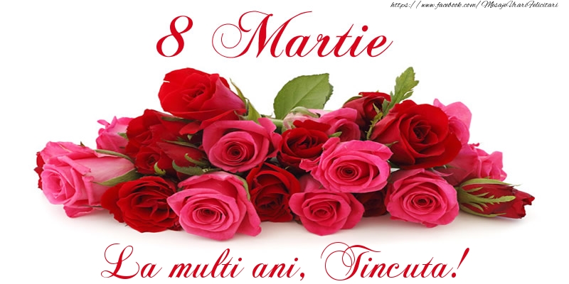 Felicitare cu trandafiri de 8 Martie La multi ani, Tincuta!