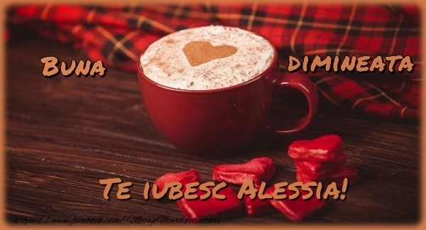 Felicitari de buna dimineata cu numele Alessia, felicitari cu numele de fata Alessia de buna dimineata. Fiecare felicitare cu numele Alessia transmite pasiunea și energia dimineții, iar numele este elementul central care aduce un strop de vitalitate.