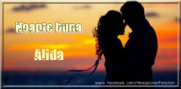 Trimite si tu un gand frumos intr-o felicitare de noapte buna tuturor care porta numele de Alida. Fiecare felicitare trimite un "Noapte Bună" plin de căldură, iar numele Alida este elementul central al acestei urări de noapte. Felicitările de noapte buna cu numele Alida pot fi ușor distribuite online pe rețelele sociale pentru a transmite rapid urările voastre sau pot fi tipărite pentru a fi un cadou tangibil și memorabil.