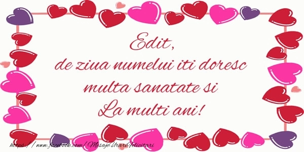 Ziua Numelui este un moment special în viața fiecărei persoane, iar o imagine personalizată cu numele Edit poate transforma această zi într-una de neuitat. Alege imagini speciale care adaugă un plus de bucurie acestei sărbători!