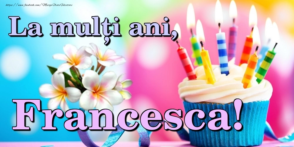 Felicitări unice de aniversare pentru Francesca! Alege poze de LA MULȚI ANI personalizate cu numele Francesca și transmite cele mai călduroase urări!