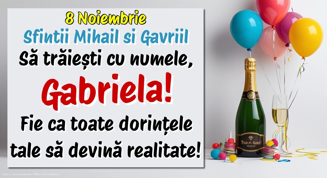 8.Noiembrie - Sfintii Mihail si Gavriil La mulți ani, Gabriela! Cu ocazia zilei numelui tău, îți trimit cele mai calde urări de bine și de sănătate! Fie ca tot ce îți dorești să devină realitate.