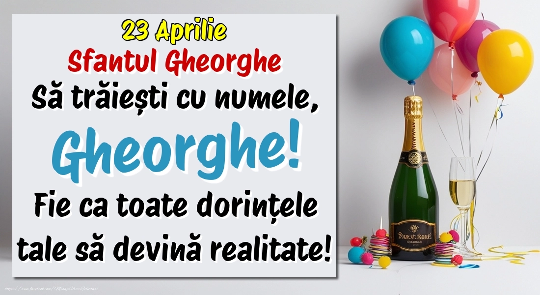 23.Aprilie - Sfantul Gheorghe La mulți ani, Gheorghe! Cu ocazia zilei numelui tău, îți trimit cele mai calde urări de bine și de sănătate! Fie ca tot ce îți dorești să devină realitate.