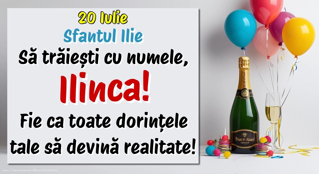 20.Iulie - Sfantul Ilie La mulți ani, Ilinca! Cu ocazia zilei numelui tău, îți trimit cele mai calde urări de bine și de sănătate! Fie ca tot ce îți dorești să devină realitate.