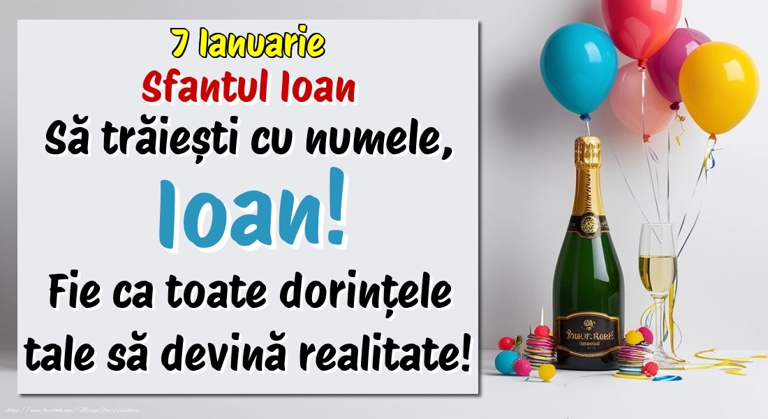 7.Ianuarie - Sfantul Ioan La mulți ani, Ioan! Cu ocazia zilei numelui tău, îți trimit cele mai calde urări de bine și de sănătate! Fie ca tot ce îți dorești să devină realitate.