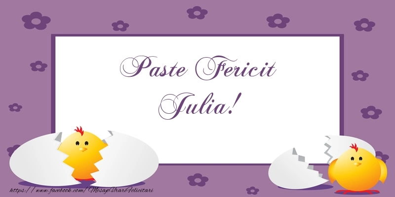 Transmite cele mai frumoase urări de Paște cu poze personalizate cu Paște Fericit Julia. Mesaje calde și imagini pline de lumină pentru a sărbători împreună această perioadă minunată!