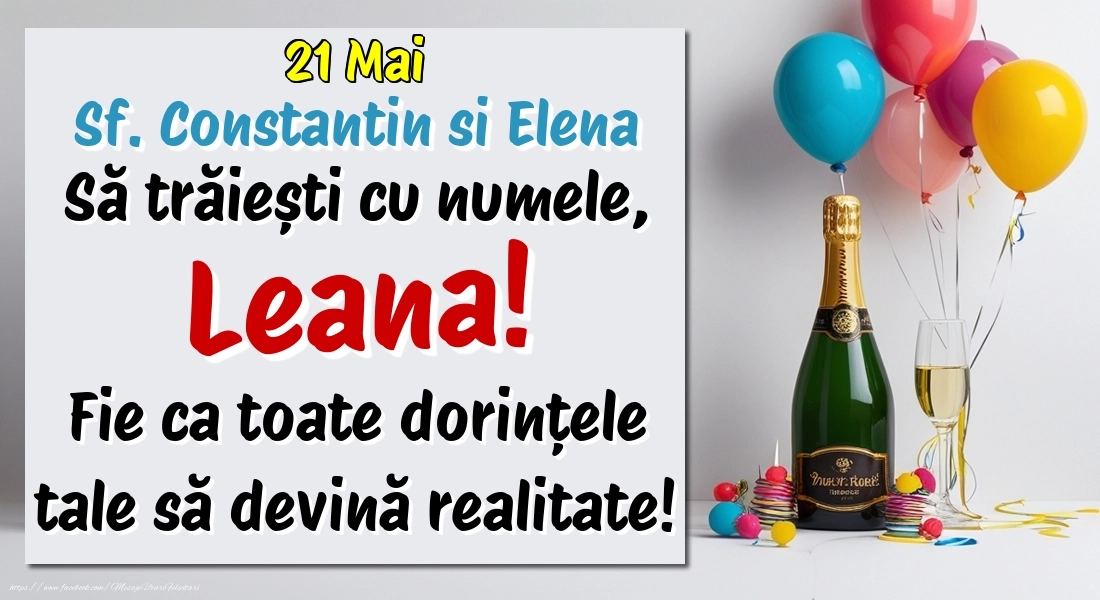21.Mai - Sf. Constantin si Elena La mulți ani, Leana! Cu ocazia zilei numelui tău, îți trimit cele mai calde urări de bine și de sănătate! Fie ca tot ce îți dorești să devină realitate.