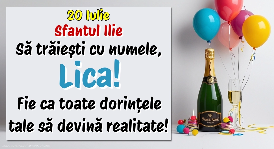20.Iulie - Sfantul Ilie La mulți ani, Lica! Cu ocazia zilei numelui tău, îți trimit cele mai calde urări de bine și de sănătate! Fie ca tot ce îți dorești să devină realitate.