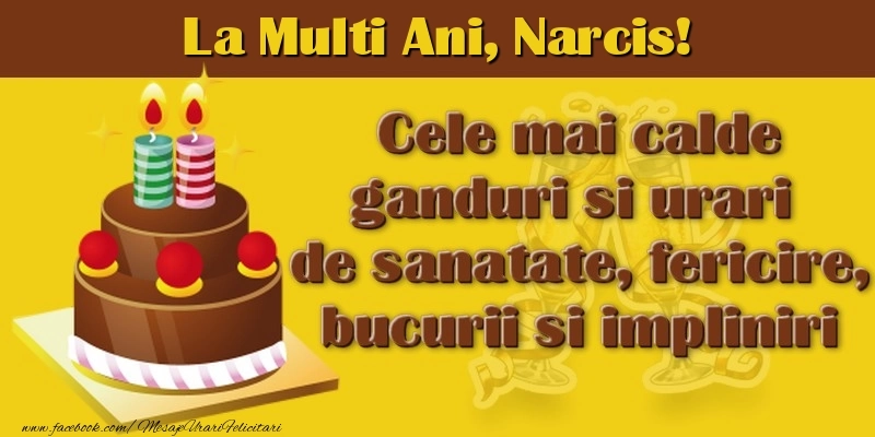 Alege dintr-o selecție de fotografii cu urări de La Mulți Ani pentru Narcis. Transmite cele mai frumoase mesaje aniversare cu imagini personalizate, pentru un moment special.