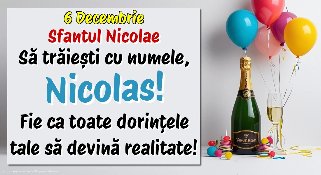 6.Decembrie - Sfantul Nicolae La mulți ani, Nicolas! Cu ocazia zilei numelui tău, îți trimit cele mai calde urări de bine și de sănătate! Fie ca tot ce îți dorești să devină realitate.