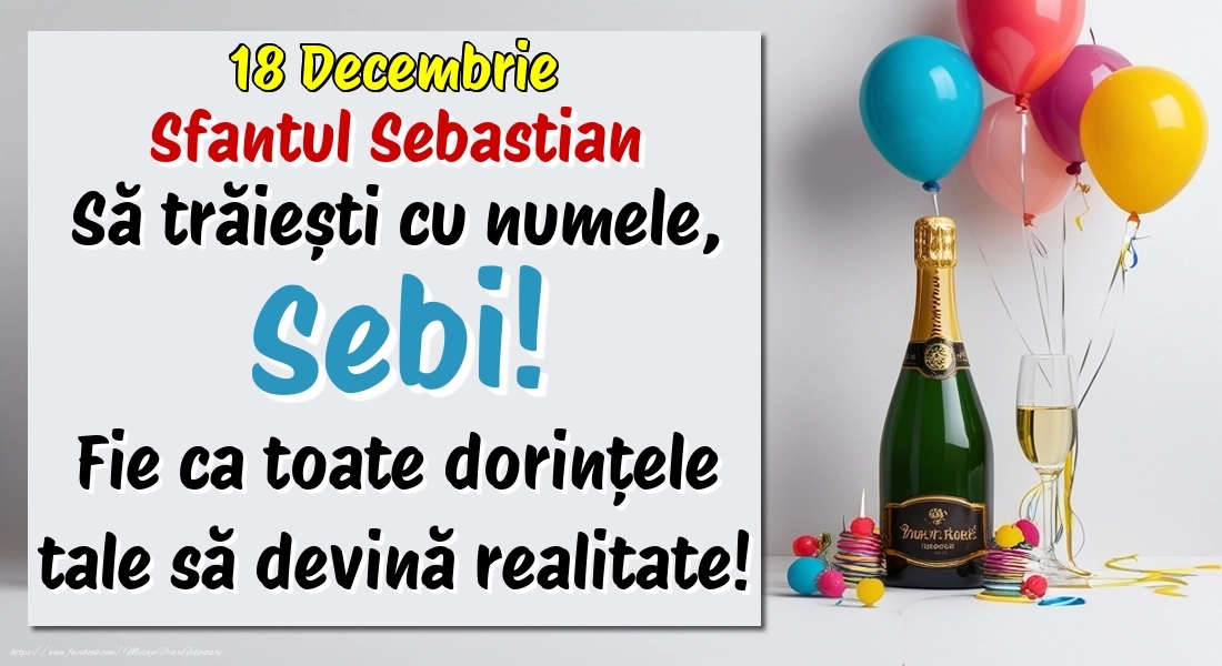 18.Decembrie - Sfantul Sebastian La mulți ani, Sebi! Cu ocazia zilei numelui tău, îți trimit cele mai calde urări de bine și de sănătate! Fie ca tot ce îți dorești să devină realitate.