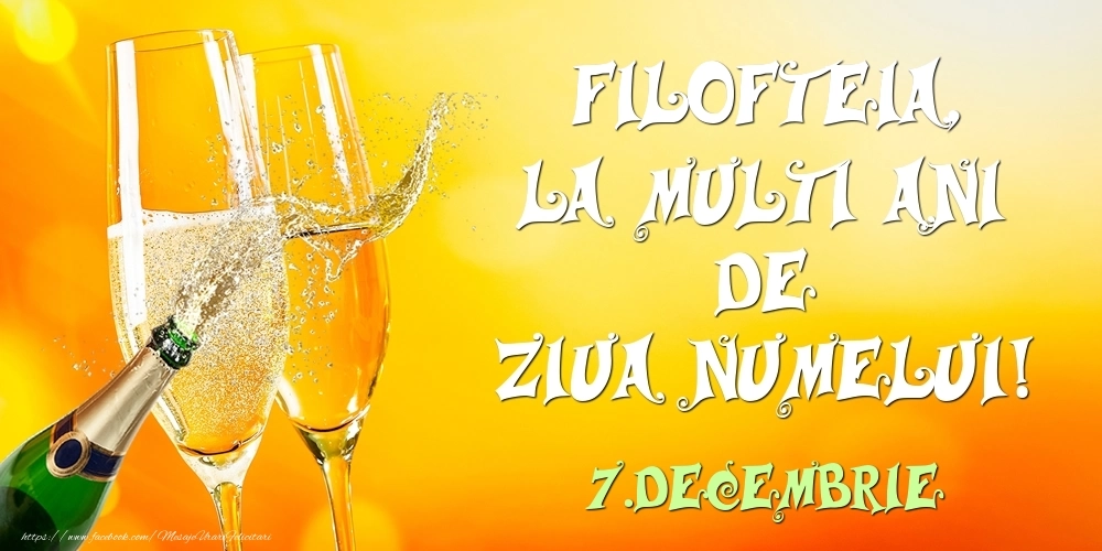 Filofteia, la multi ani de ziua numelui! 7.Decembrie | Felicitare cu șampanie și pahare pentru bărbați sau femei | Felicitari de Ziua Numelui