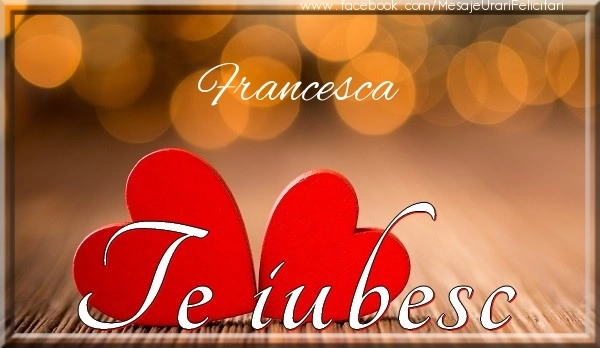 Această felicitare cu 2 inimioare din colecția noastră de felicitari de dragoste cu numele Francesca are o notă de originalitate și îți oferă ocazia să faci o persoană să se simtă specială datorită faptului că acolo este numele ei. Felicitarea se poate descărca gratuit sau se poate trimite prin Whatsapp, Facebook, Twitter, Pinterest. Imagine de iubire cu 2 inimioare cu dimensiunile 600px x 348px și cu textul Francesca Te iubesc.