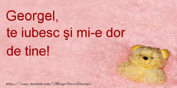 Georgel te iubesc si mi-e dor de tine! | Felicitare cu ursuleț pentru femei sau bărbați | Felicitari de dragoste