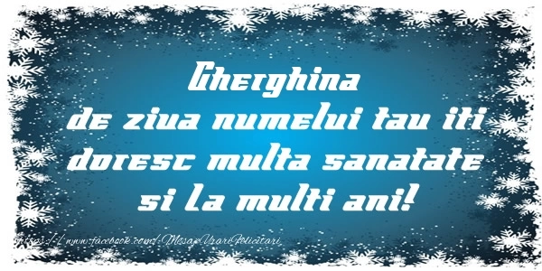 Gherghina de ziua numelui tau iti doresc multa sanatate si La multi ani! | Felicitare cu un mesaj pe fundal de iarna | Felicitari de la multi ani
