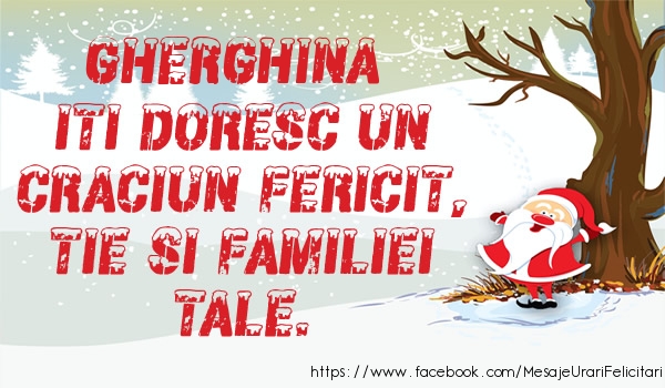 Gherghina iti doresc un Craciun fericit, tie si familiei tale | Felicitare cu Mos Craciun intr-un peisaj de iarnă | Felicitari de Craciun