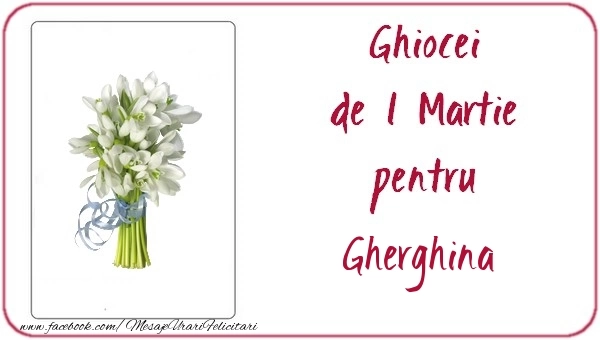 Transformă Mărțișorul într-o experiență personală! Această felicitare de 1 Martie cu mărțișor cu un buchet de ghiocei este gândită și creată cu atenție, iar numele Gherghina se îmbină armonios în designul primăvăratic. O urare cu adevărat specială pentru o persoană unică.