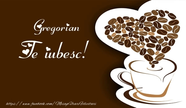 Această felicitare cu cafea cu boabe în forma de inimioară din colecția noastră de felicitari de dragoste cu numele Gregorian are o notă de originalitate și îți oferă ocazia să faci o persoană să se simtă specială datorită faptului că acolo este numele ei. Felicitarea se poate descărca gratuit sau se poate trimite prin Whatsapp, Facebook, Twitter, Pinterest. Imagine de iubire cu cafea cu boabe în forma de inimioară cu dimensiunile 600px x 350px și cu textul Gregorian, Te iubesc .