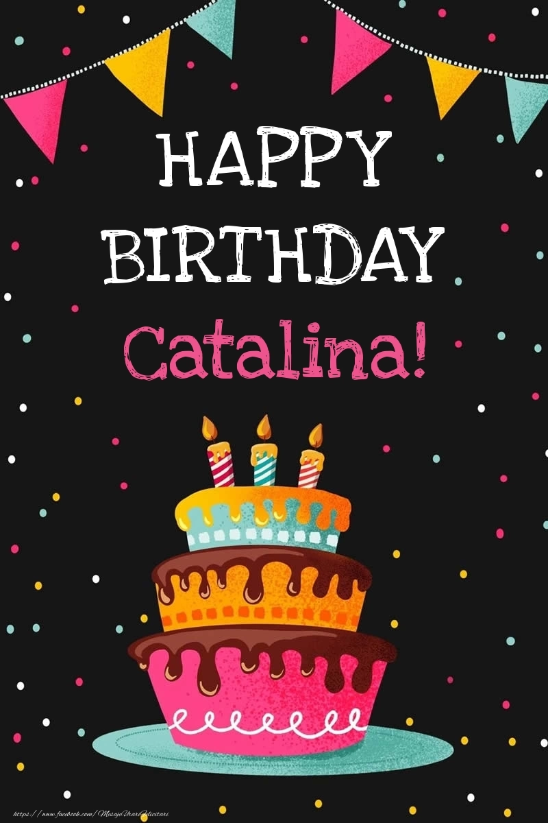 Felicitarea cu tort cu mesaj in engleză Happy Birthday este un cadou mic, dar personal, creat special pentru ziua de naștere. Numele Catalina e esența acestui cadou, aducând bucurie într-un mod simplu și intim.