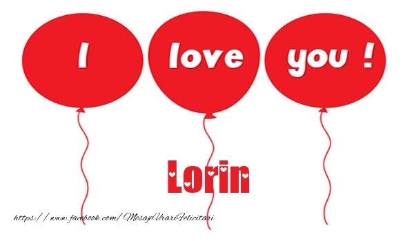 Această felicitare cu I love you scris în baloane din colecția noastră de felicitari de dragoste cu numele Lorin are o notă de originalitate și îți oferă ocazia să faci o persoană să se simtă specială datorită faptului că acolo este numele ei. Felicitarea se poate descărca gratuit sau se poate trimite prin Whatsapp, Facebook, Twitter, Pinterest. Imagine de iubire cu I love you scris în baloane cu dimensiunile 600px x 350px și cu textul Lorin.